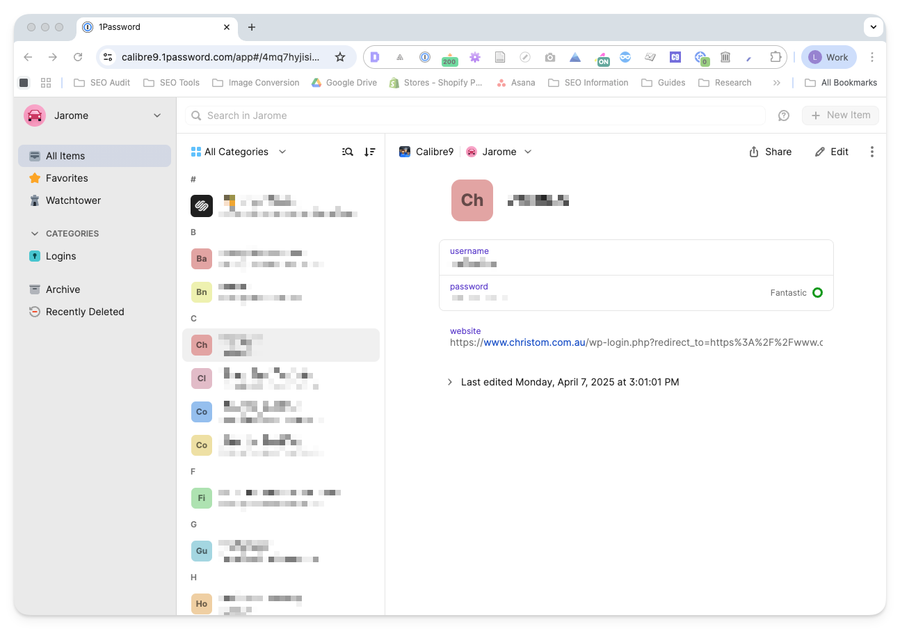 Access will be provided via your company Gmail account. I recommend downloading the Chrome Extension for accessing passwords. I do not recommend the desktop app – it is slow, clunky and adds extra steps to the login process. Contact