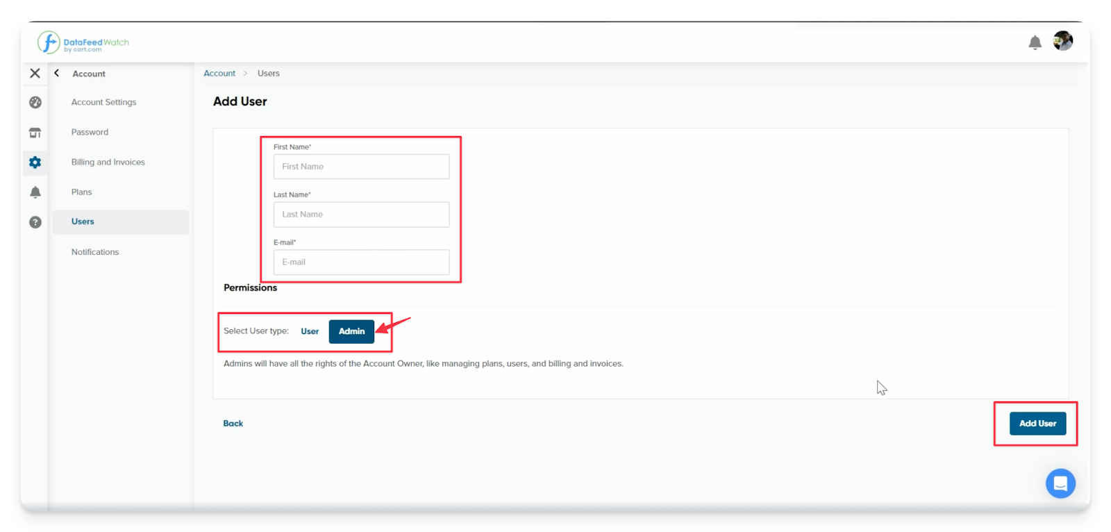 2 | Select Users in the left navigation then click Add User. | ![]() |