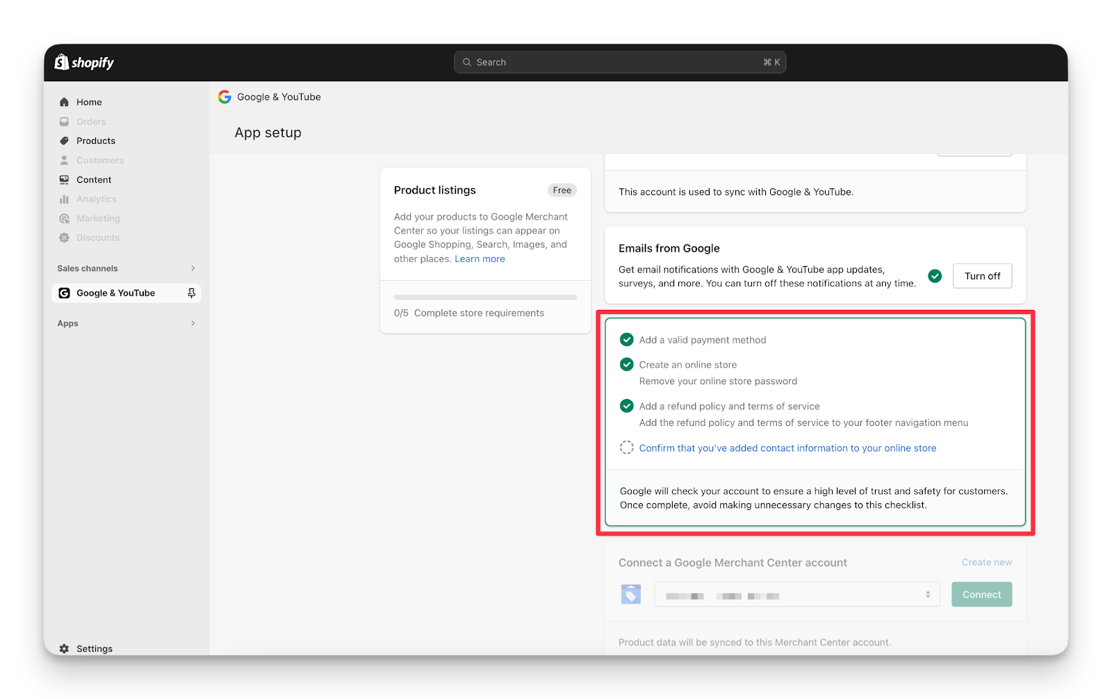 5 | All done! Your Google Merchant Centre account is now integrated with Shopify and ready for a GMC campaign to begin. |