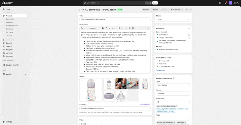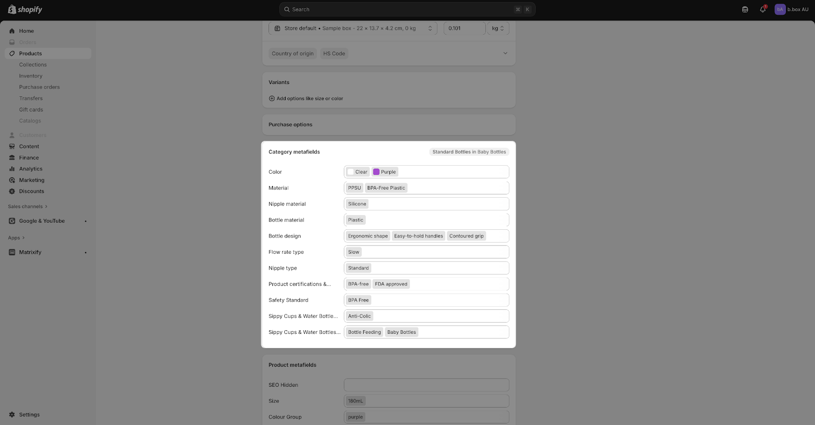 7 | Populate each Category Metafield attribute to the best of your ability manually then hit Save. Repeat the same process for all the products in the Greedy List. | ![]() |